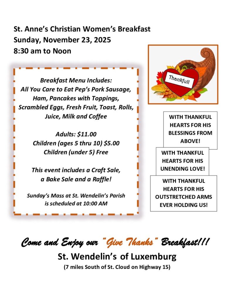 St. Anne’s Christian Women’s Breakfast Sunday, November 23, 2025